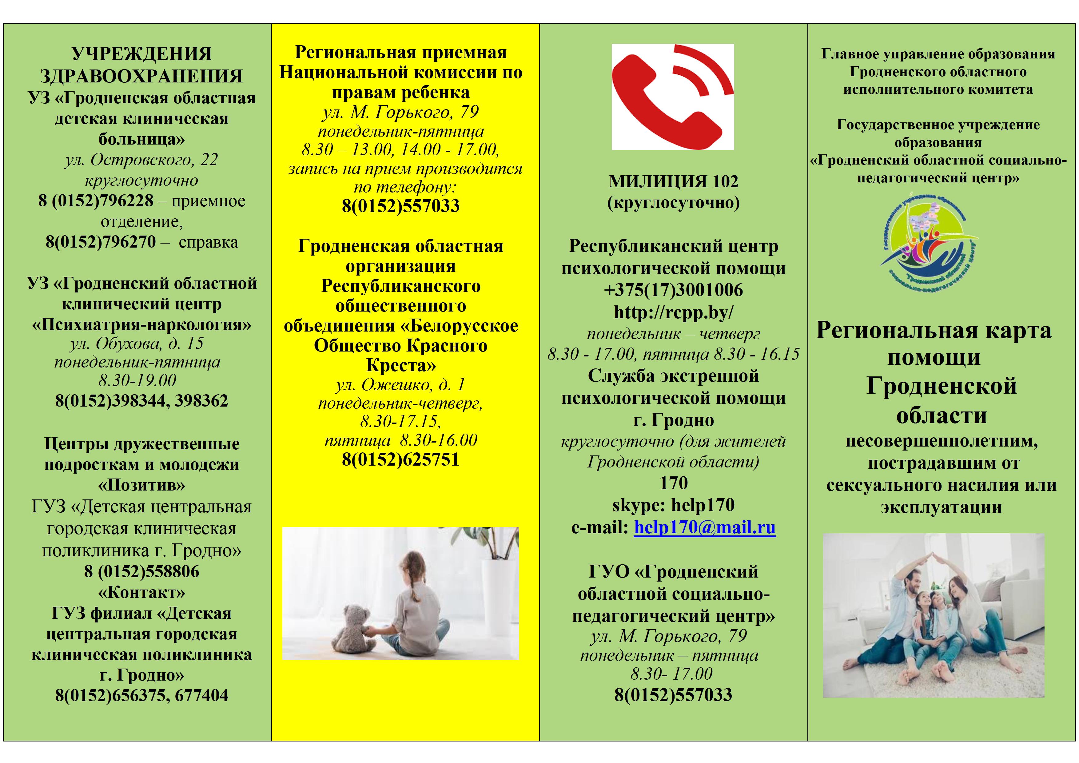 по тел. 102 (круглосуточно) (выяснение обстоятельств происшествия, оказание юридической и психологической помощи)